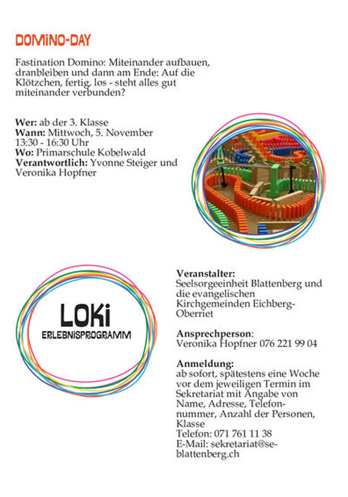 Neben dem Unterricht und den bewährten ausserschulischen Angeboten wie Sechstklassfahrt oder den Erstkommunionausflug bietet das LOKi Erlebnisprogramm unter dem Titel „Kirche erleben und entdecken“ zusätzliche kostenlose Veranstaltungen für Familien, Kinder und Jugendliche an.